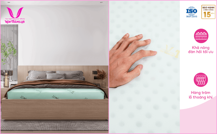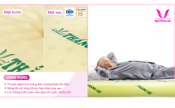 Bảo hành dài hạn: Thắng Lợi cam kết bảo hành nệm cao su non từ 15 năm, tùy theo loại sản phẩm, đảm bảo sự yên tâm cho khách hàng trong suốt thời gian sử dụng.